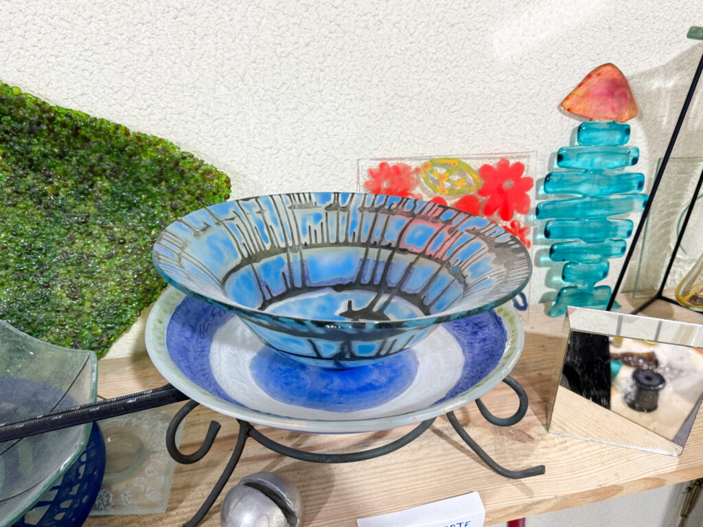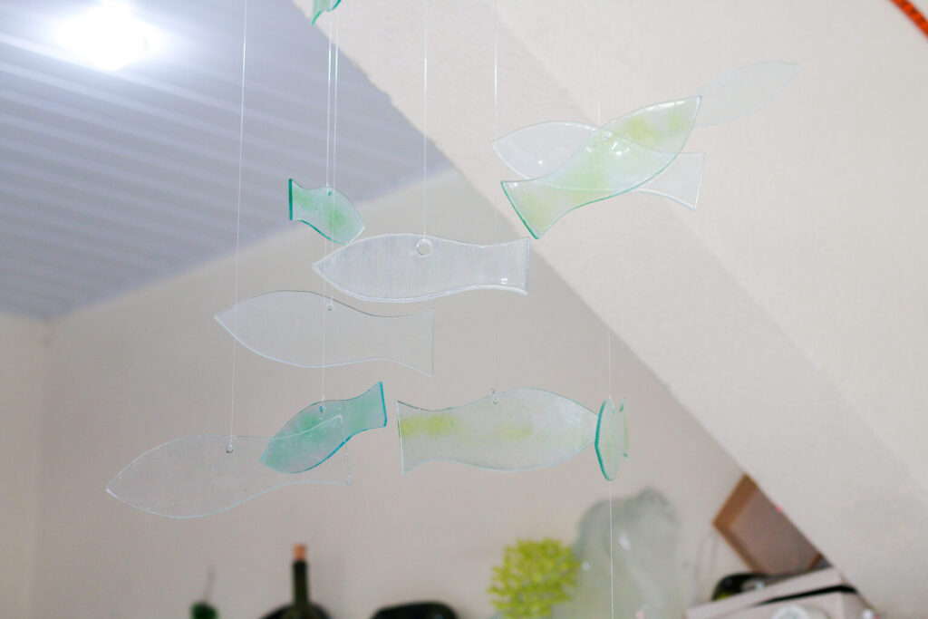 “O que me chamou atenção foi o aproveitamento do vidro, do que fica jogado na rua. A gente passa de carro, vê um vidro, já pega e traz. Coloca no forno e transforma em arte”, explica.