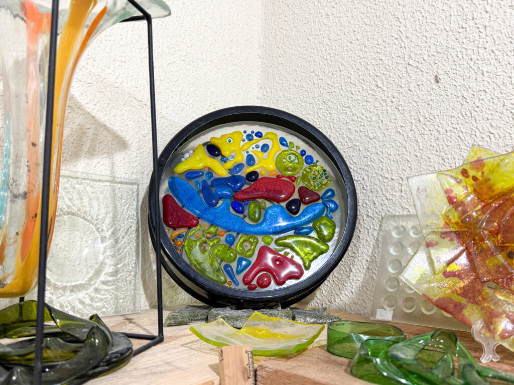 Hoje, as duas salas cedidas pela Prefeitura de Matinhos, na Arena Vicente Gurski, abrigam turmas regulares de vitrofusão – técnica que utiliza o calor para fundir o vidro em novas formas. A maioria das alunas são mulheres, com idades que vão de 18 a 70 anos. Elas aprendem a cortar, limpar e remodelar o material, transformando resíduos em peças de design e arte utilitária.