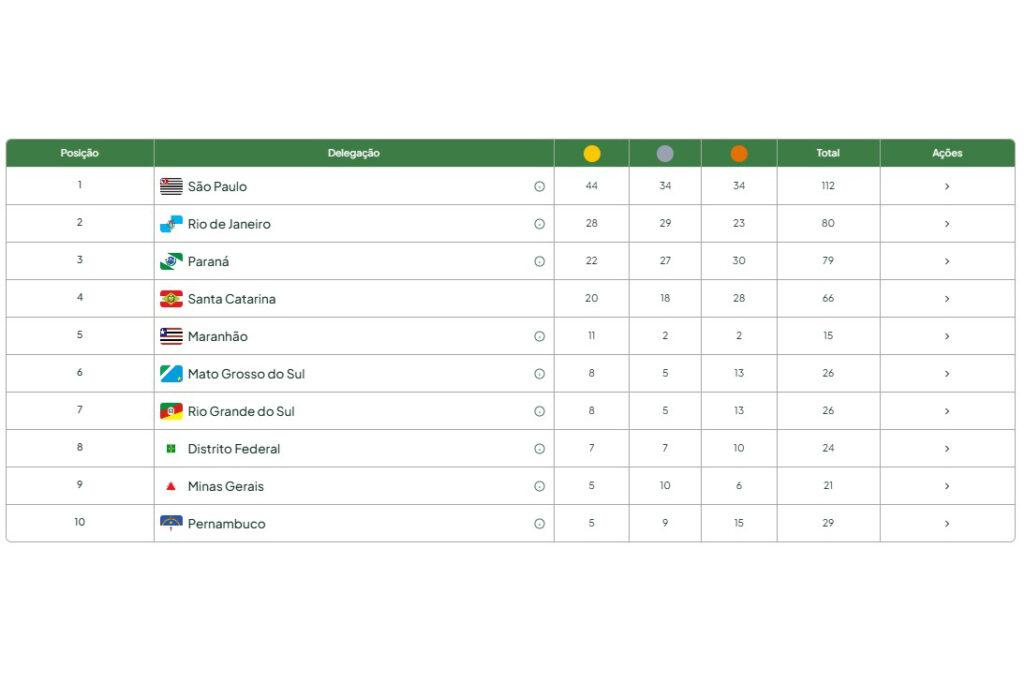 O diretor de Esportes da SEES, Cristiano Barros D’El Rei, complementa que este resultado reforça os investimentos no esporte feitos pelo Paraná em diversas frentes. “Temos as competições para as categorias de base, o Proesporte, o Geração Olímpica e Paralímpica, o programa Esporte que Queremos e a consolidação do Plano Decenal do Esporte (2026-2035), em fase de encaminhamento para virar lei na Assembleia Legislativa. Tudo isso faz parte de uma política pública sólida que vem transformando o esporte paranaense”, explicou.