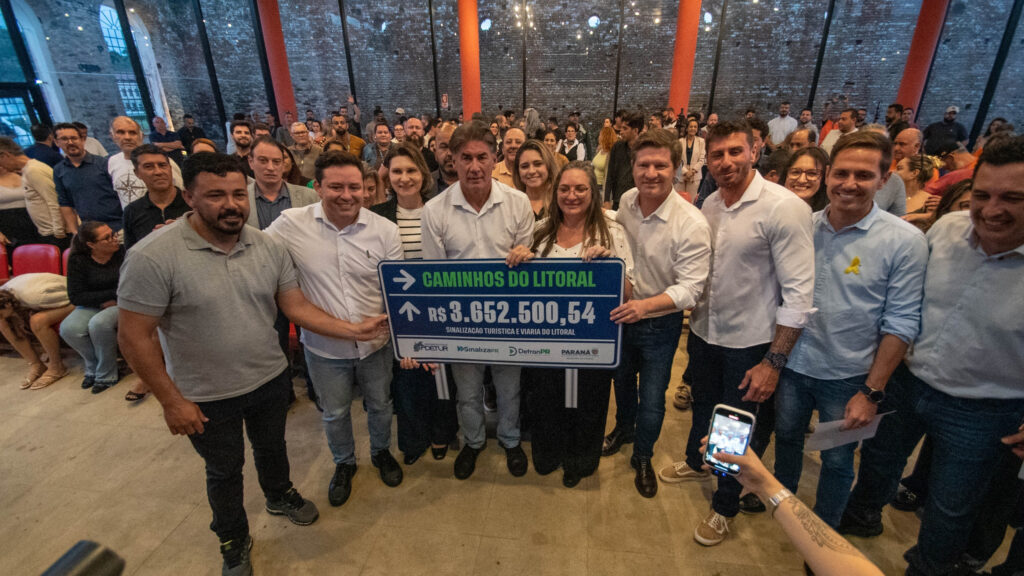 Paranaguá foi destaque no lançamento do projeto Caminhos do Litoral, realizado na quarta-feira, dia 17, em Antonina. A iniciativa do Departamento de Trânsito do Paraná (Detran-PR) destinou ao município R$ 862,5 mil, o maior repasse entre as sete cidades contempladas. Os recursos serão aplicados na instalação de placas de identificação de atrativos turísticos, sinalização direcional, padronização da sinalização já existente e placas bilíngues, garantindo mais segurança viária e valorização do turismo local.